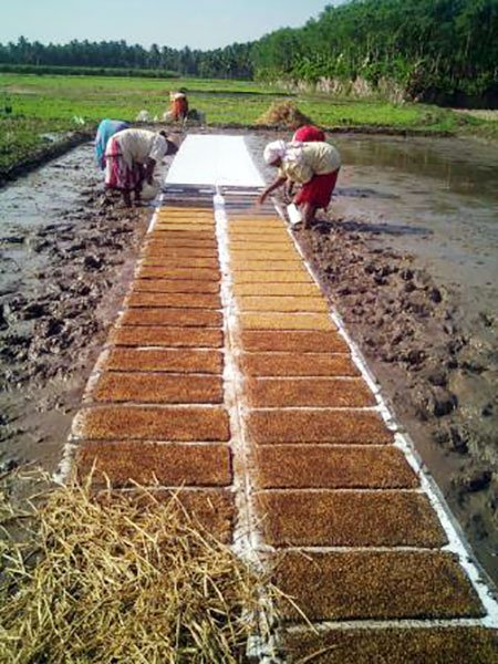 - The nursery is transplanted much earlier (traditional is around 30 days), anywhere between 12th to 18th day decreasing the disturbance to roots as well as allowing time for tiller growth.